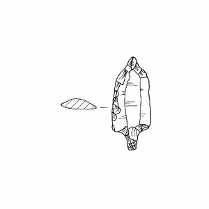 Punta foliata con peduncolo. Ritocco piatto, coprente, diretto. Margini rettilinei, punta ristretta, spalle. Sezione piano-convessa. Superficie lucida. Colore grigio scuro 2,5Y3/0.