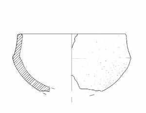 Orlo piatto; parete distinta lievemente concava, rastremata verso l'orlo; vasca a calotta. Colore: grigio scuro.