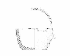 Orlo di forma arrotondata decorato a impressioni digitali; pareti leggermente convesse; fondo piano. Colore: marrone chiaro