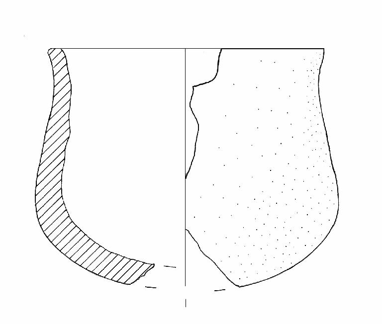 Orlo di forma arrotondata; corpo globoso, fondo convesso. Colore: marrone grigio molto scuro.