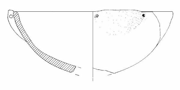 Orlo piatto. Ansa sottocutanea impostata all'orlo. Colore: nero lucente