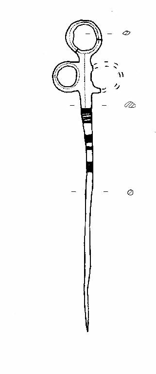 Gambo a sezione circolare, decorato con tre fasci di sottili incisioni.