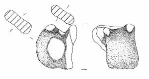 Profilo leggermente a gomito. Alle estremità laterali superiori sono presenti due piccole bugne circolari. Colore: nero.
