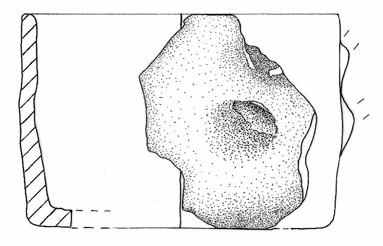 Orlo arrotondato,, parete a profilo rettilineo. A breve distanza dall'orlo vi sono tracce dell'attacco superiore e inferiore di un'ansa. Colore: bruno.