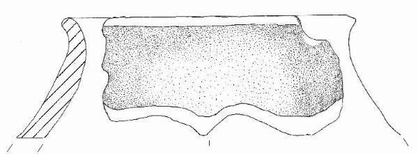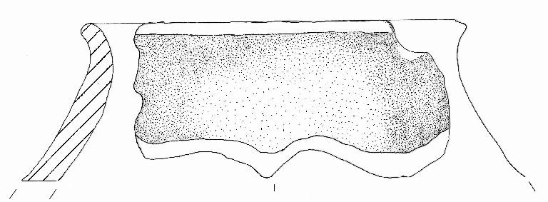 Orlo arrotondato, obliquo verso l'esterno, labbro esoverso e parete a profilo sinuoso. \nColore: bruno scuro.