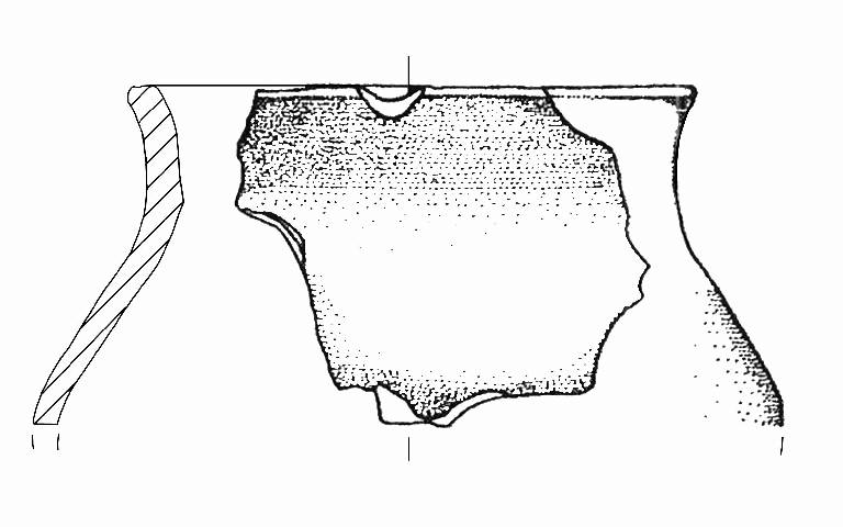 Orlo appiattito, labbro esoverso; corpo globoso. Colore: grigio-bruno