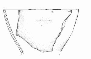 Orlo arrotondato; parete leggermente convessa. Colore: grigio-bruno.