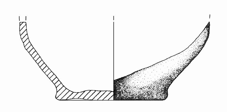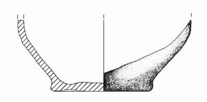 Base irregolarmente piana; tacco; parete convessa. Colore: grigio.