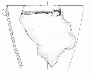 Orlo arrtondato; parete rettilinea. Poco sotto l'orlo cordone plastico a sezione triangolare con decorazione plastica con doppia appendice a bottone. Colore: bruno.