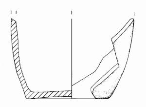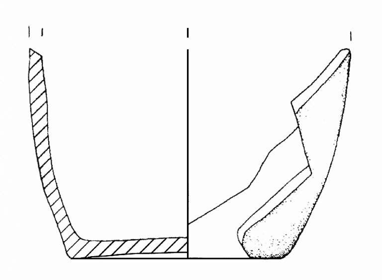 Fondo concavo; parete leggermente convessa. Colore: grigio-rosso.