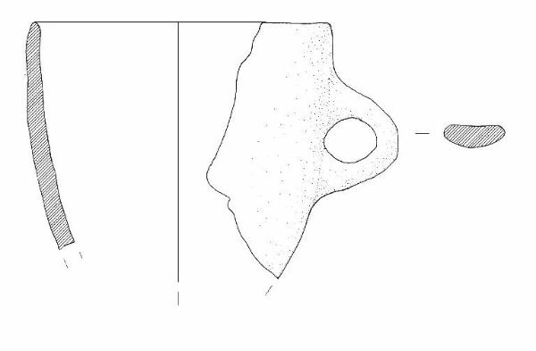 Orlo di forma arrotondata; ansa nastriforme leggermente insellata con frofilo ad anello.\nColore: grigio beige.