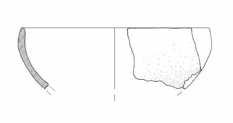 Orlo piatto. Tracce di mastice sulla parete tracce di restauro in antico .\nColore: marrone molto scuro.