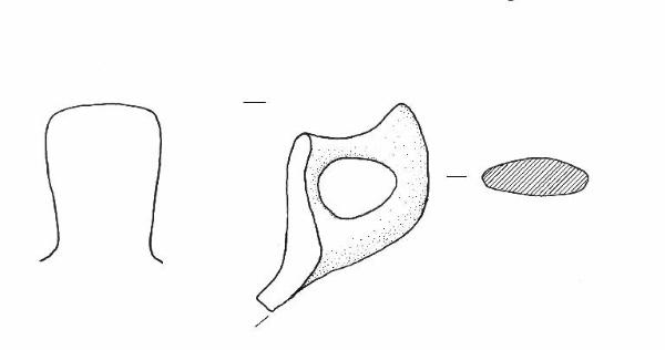 Orlo di forma arrotondata; profilo sinuoso. Ansa nastriforme sopraelevata con appendice asciforme, impostata all'orlo e in corrispondenza del diametro max.\nColore: marrone.