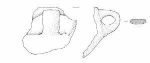 Vasca a calotta. Ansa nastriforme an anello. Breve cordone plastico obliquo aimprossimità degli attacchi dell'ansa.\nColore: grigio-beige.
