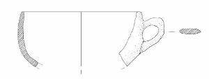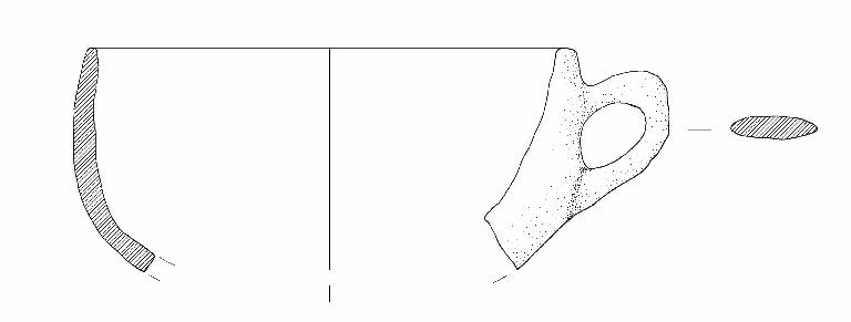 Orlo piatto. Ansa nastriforme ad orecchio impostata poco sotto l'orlo.\nColore: da grigio chiaro a marrone.