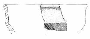Scodella carenata con orlo assottigliato leggermente estroflesso, parete distinta rettilinea, Ø orlo > Ø carena, vasca troncoconica con tracce di decorazione costituite da sottili solcature.\nImpasto a tessitura grossolana, di colore bruno chiaro, inclusi anche di grandi dimensioni, con distribuzione irregolare.