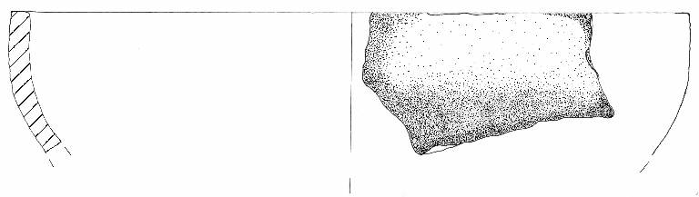 Scodellone con orlo appiattito parete con profilo concavo. \nimpasto a tessitura fine, di colore marrone chiaro, inclusi puntiformi, con frequenza scarsa e distribuzione irregolare. Superficie lisciata con tracce di ripassatura a stecca.