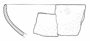 Scodella/ciotola con orlo arrotondato, corpo a calotta. Impasto a tessitura fine, di colore grigio (2,5Y6/0), inclusi puntiformi e granulosi, con frequenza scarsa e distribuzione irregolare. Superficie lisciata, esternamente lucidata, esterna di colore grigio scuro (7,5R4/0), interna di colore bruno scuro (2,5Y6/0).