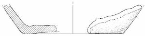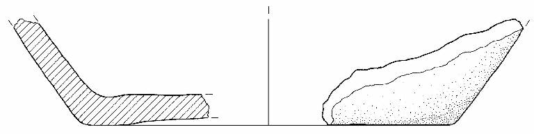 Fondo leggermente concavo.\nImpasto a tessitura grossolana, di colore grigio (7,5R7/0), inclusi puntiformi, granulosi e grossolani, con frequenza abbondante e distribuzione irregolare. Superficie scabra, esternamente a tratti lisciata, esterna di colore grigio (7,5R5/0) e bruno (7,5YR5/2), interna di colore bruno rosso chiaro (5YR6/3).