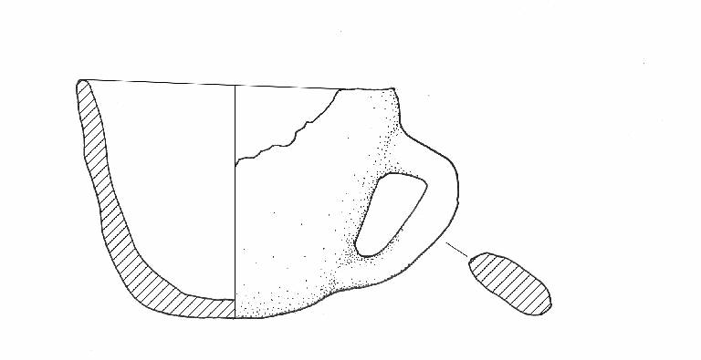 Orlo di forma arrotondata; fondo leggermente convesso. Ansa nastriforme ad orecchio.\nColore: da arancio a grigio.