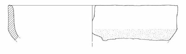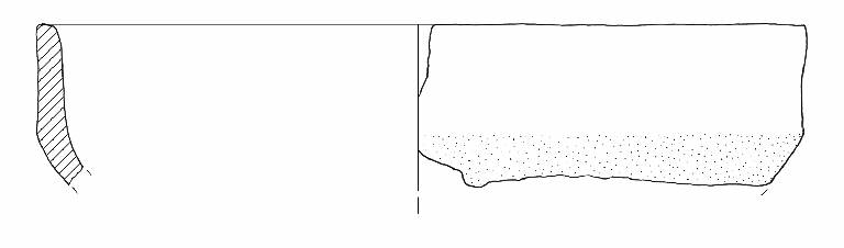 Orlo di forma arrotondata; parete distinta leggermente concava; diametro orlo=diametro max.\nColore: grigio.