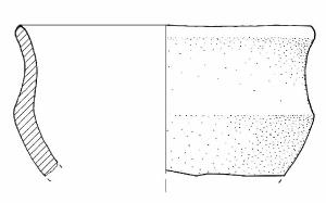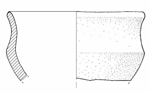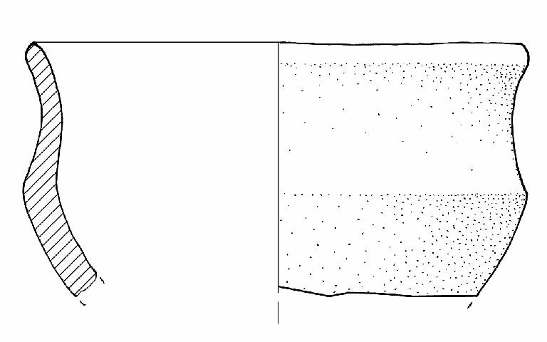 Orlo di forma arrotondata lievemente esoverso; parete distinta concava; diametro orlo=diametro max.\nColore: grigio scuro.