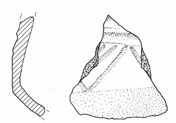 Prete superiore decorata a sottili solcature: linee orizzontali e denti di lupo.\nColore: grigio.