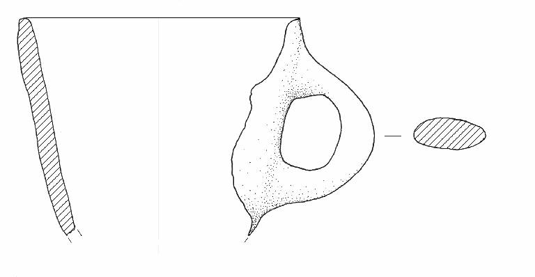 Orlo di forma arrotondata. Ansa nastriforme ad anello.\nColore: grigio-beige.