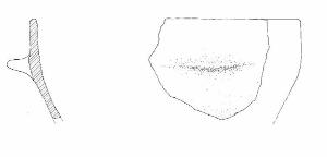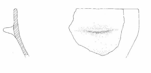 Orlo di forma arrotondata. Presa a linguetta poco sotto l'orlo.\nColore: grigio.