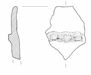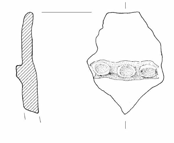 Orlo di forma arrotondata. Poco sotto l'orlo, cordone plastico a impressioni ovaleggianti.\nColore: beige.