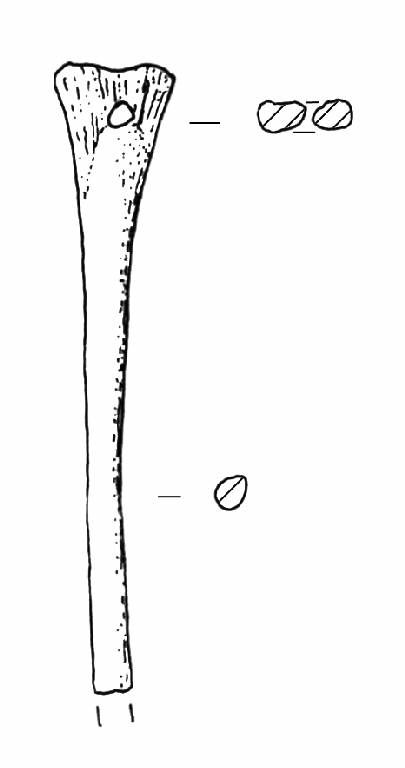 Base triangolare con foro passante a pareti cilindriche. Gambo simmetrico.