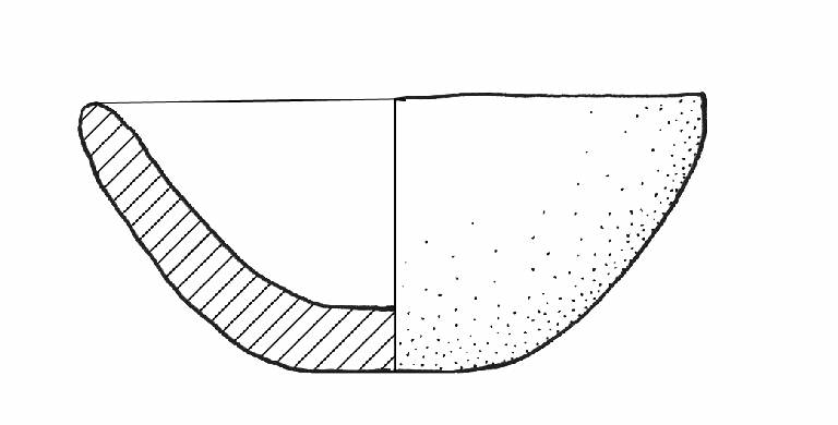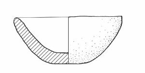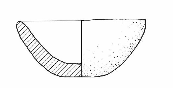 Orlo di forma arrotondata, fondo piano.\nColore: marrone-grigio.