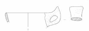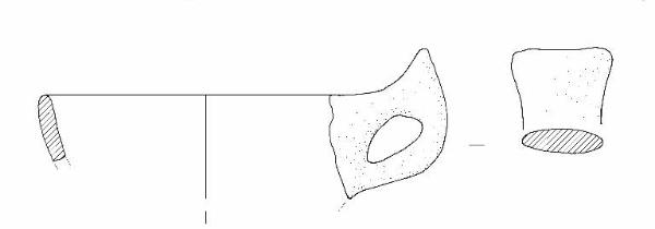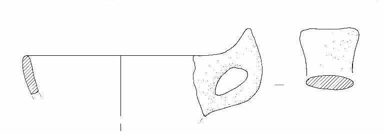 Orlo di forma arrotondata. Ansa nastriforme sopraelevata con appendice asciforme.\nColore: beige.