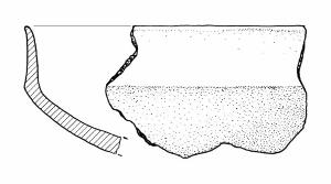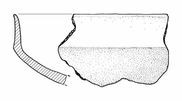 Orlo di forma arrotondata, assottigliato; parete rettilinea, vasca a calotta.