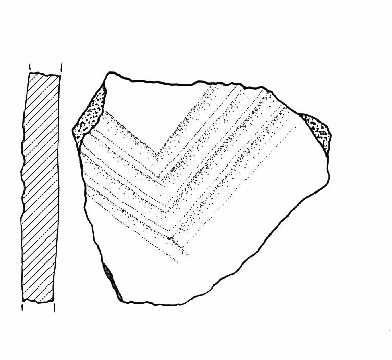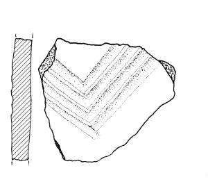 Probabile vasca di scodellone decorata con un motivo a solcature a V.