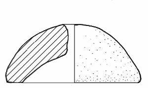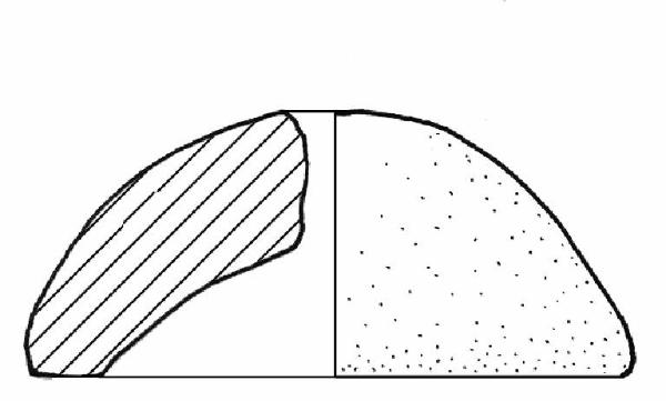 Forma emisferica, base fortemente concava.\nColore: grigio.