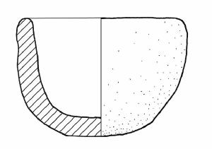 Orlo di forma arrotondata, fondo piano.\nColore: grigio-beige.