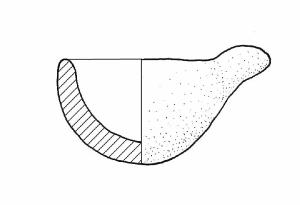 Corpo emisferico; presa impostata all'orlo.\nColore: grigio chiaro.