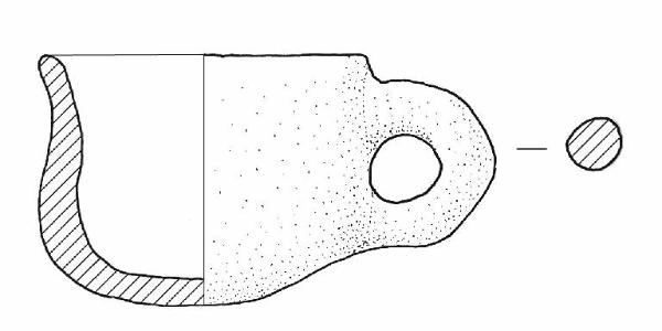 Orlo di forma arrotondata, profilo sinuoso. Ansa ad anello.\nColore: marrone.