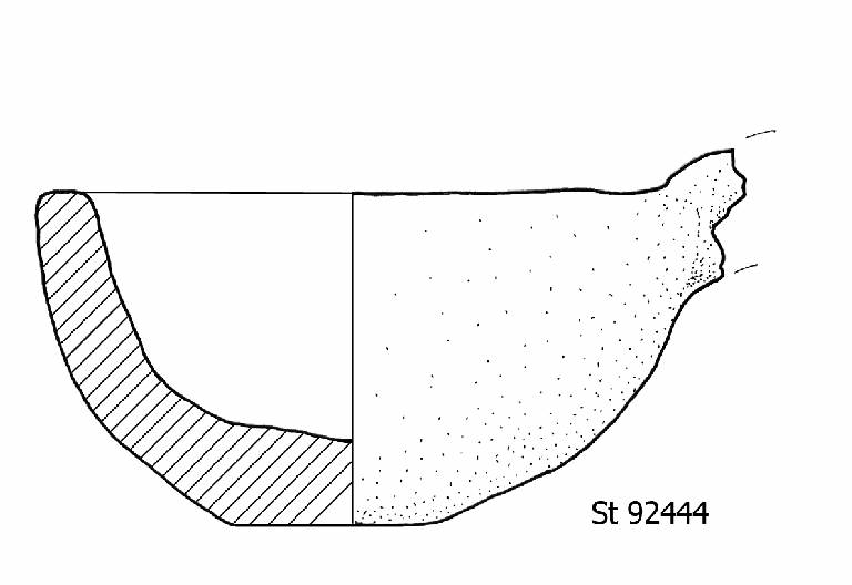 Orlo piatto, corpo emisferico. Presa impostata all'orlo.\nColore: beige.