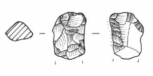 Raschiatoio foliato multiplo, ritocco coprente, bifacciale. Margine superiore convesso, margini laterali leggermente concavo-convesso. Sezione bombata.