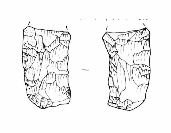 Raschiatoio foliato multiplo, ritocco coprente, bifacciale. Margine inferiore rettilineo, margini laterali concavo-convesso. Sezione biconvessa.