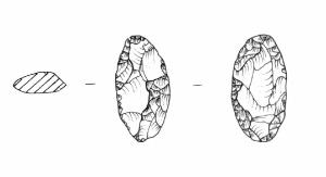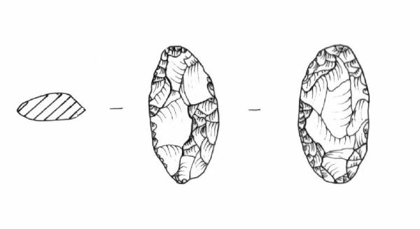 Ritocco coprente bifacciale. Larghezza massima circa a metà lunghezza. Sezione bombata.
