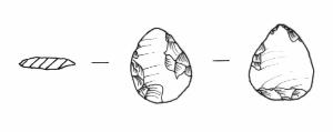 Ritocco invadente bifacciale. Larghezza massima a 2/3 della lunghezza. Sezione appiattita.