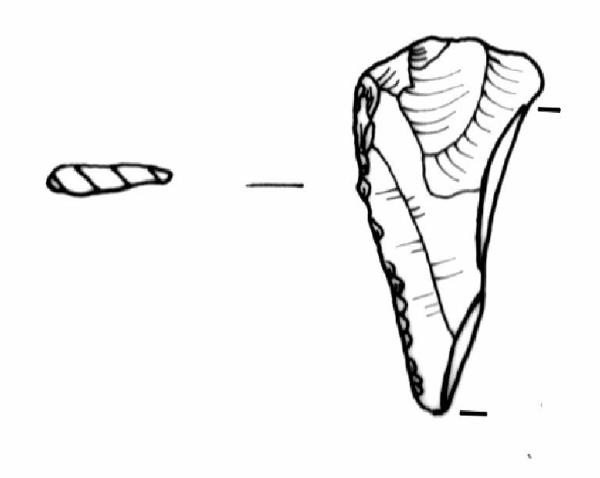 Ritocco piatto invadente, diretto, frontale; ritocco erto diretto lungo il margine sinistro.