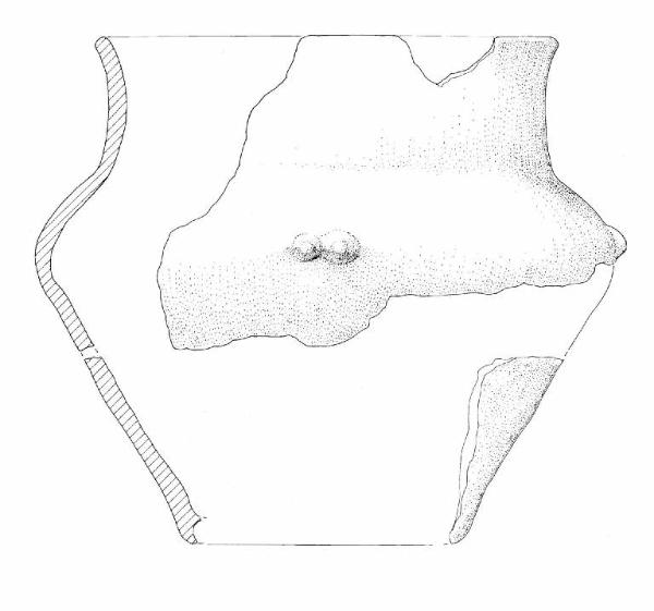 Biconico con collo distinto verticale e coppie di bugne lungo la spalla.