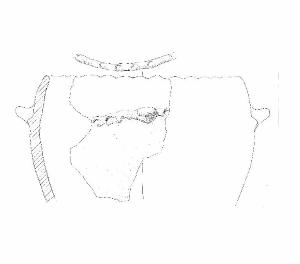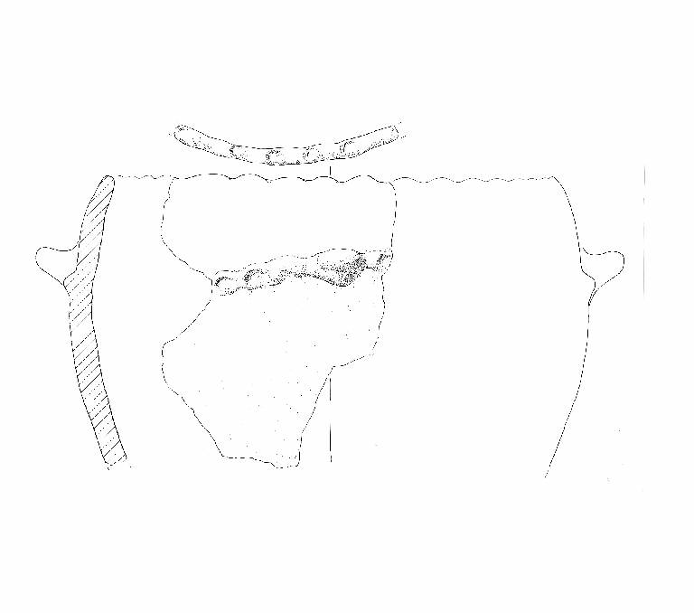 Troncoconico a parete convessa, con presa a linguetta su cordone digitato e orlo digitato.