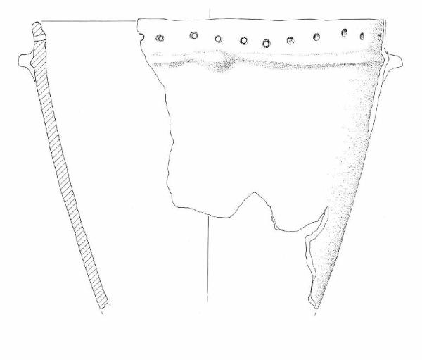 Troncoconico con orlo multiforato e cordone plastico.