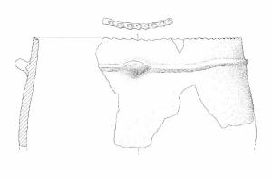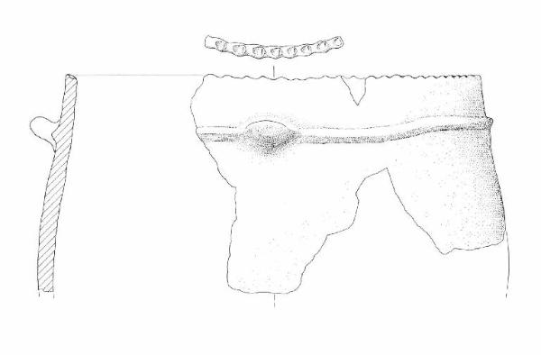 Troncoconico con prese a linguetta su cordone lungo il labbro e orlo digitato.
