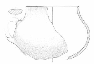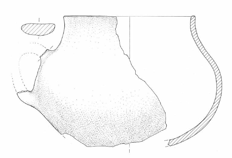 Globoso con ansa a nastro impiatata sul diametro massimo.